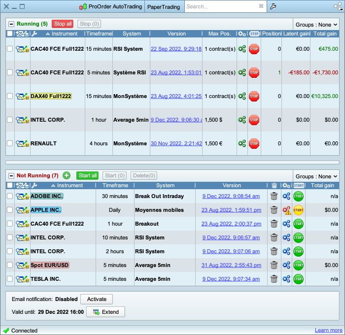 Platform ini dengan bangga menghadirkan fitur ProOrder Auto Trading yang memungkinkan penggunanya untuk membuat, menguji, dan menjalankan sistem trading secara otomatis. Bagi mereka yang menyukai strategi scalping, ProRealTime COMPLETE menyediakan beragam alat dan antarmuka yang dioptimalkan untuk melakukan transaksi dengan cepat dan efisien.