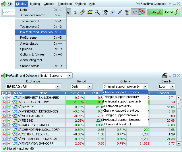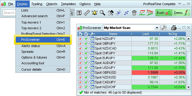 Tanpa diragukan lagi, ProScreener dari ProRealTime COMPLETE adalah salah satu alat paling populer karena kemampuannya dalam menganalisis ribuan aset di berbagai pasar keuangan dalam hitungan detik. Alat pintar, seperti peringatan real-time dan Band PRT memudahkan identifikasi peluang trading dan mengelola transaksi dengan efisien.