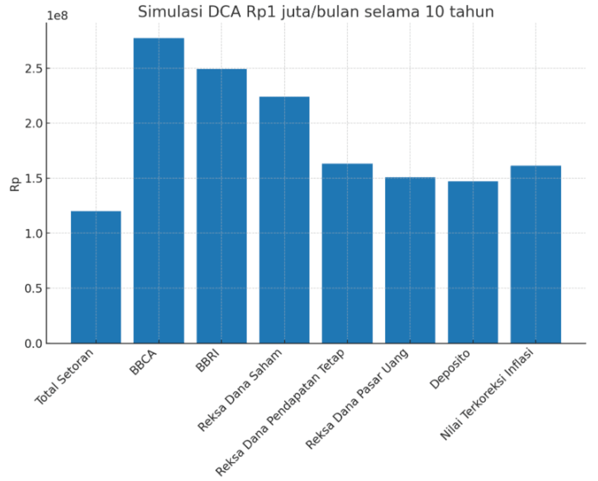 Berikut simulasi nabung untuk dana pendidikan anak Rp 1 juta per bulan selama 10 tahun: