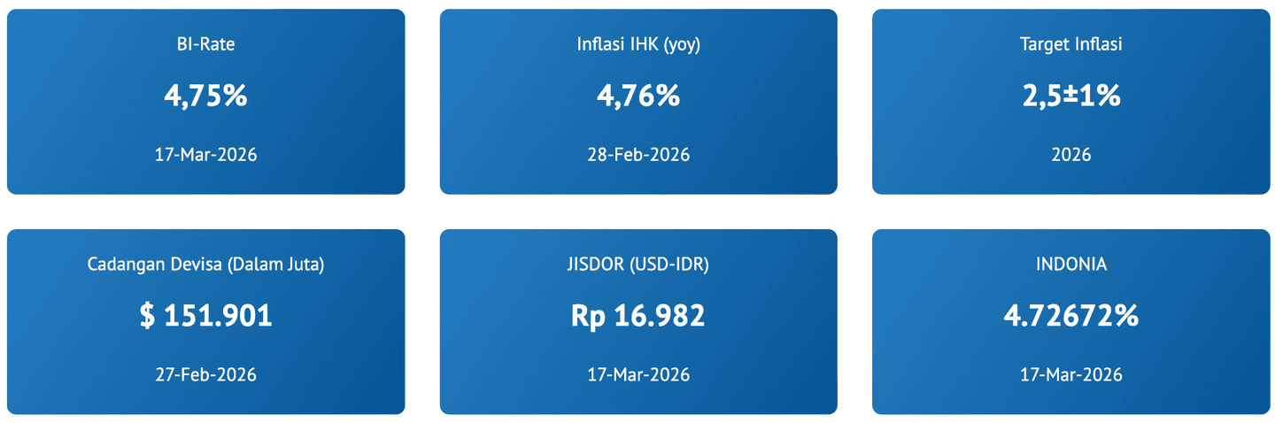 Bank Indonesia (BI) tahan suku bunga acuan Maret 2026 tetap di level 4,75%. Sejalan dengan konsensus ekonom yang memproyeksikan BI akan mempertahankan suku bunga BI rate.