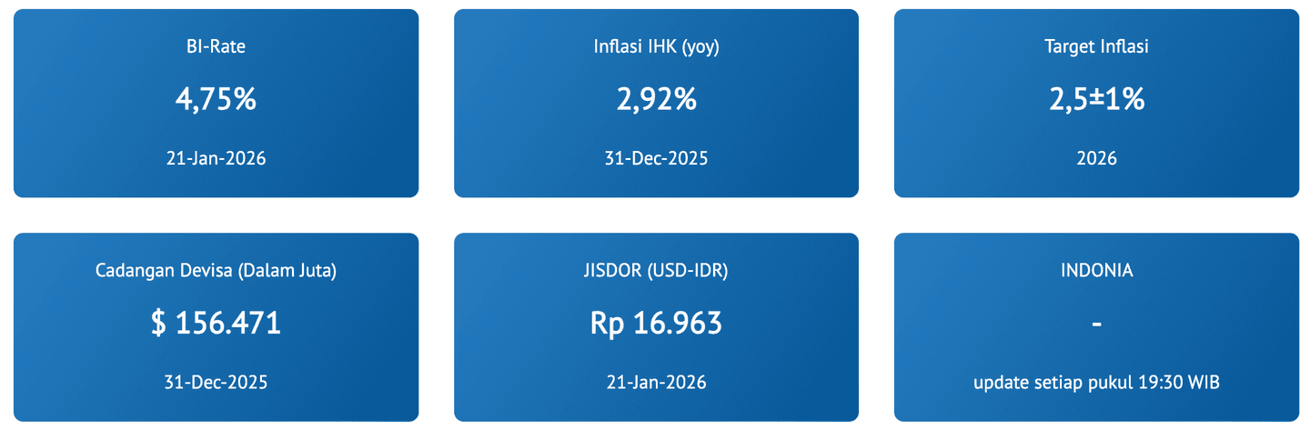 Dalam Rapat Dewan Gubernur (RDG) BI 20-21 Januari 2026, BI memutuskan suku bunga BI rate tetap 4,75%. Keputusan ini diambil BI dengan mempertimbangkan nilai tukar Rupiah yang melemah, kondisi ekonomi global yang melambat karena ketidakpastian yang meningkat.