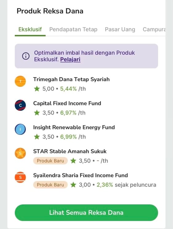 | Aset investasi | Saham 230+ produk reksa dana SBN Emas Tabungan Umroh | Reksa Dana SBN Obligasi FR Stable Earn Saham | |||