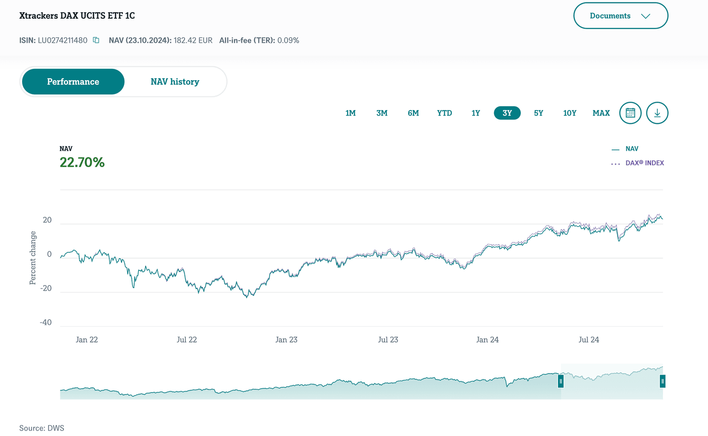 Sama seperti sebelumnya, ETF ini mereplikasi perkembangan DAX 40 Jerman.