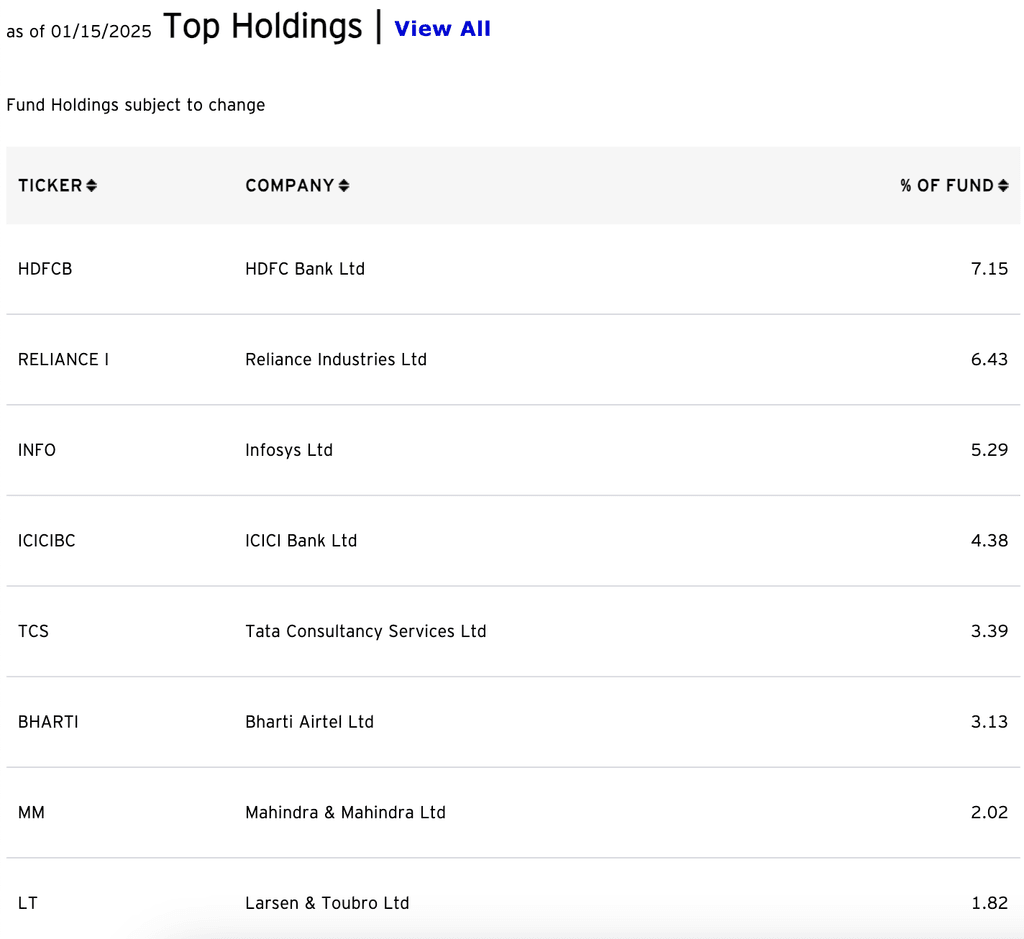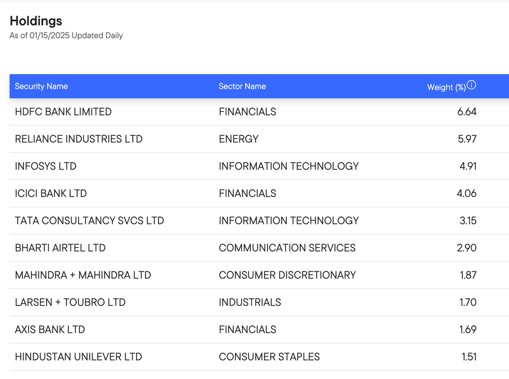 Kemudian, berikut adalah top holding dari Invesco India ETF: