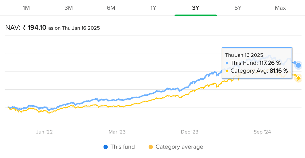 Manajer investasinya adalah Sanjeev Sharma yang berinvestasi. Reksa dana ini memiliki rating bintang empat. Berikut merupakan kinerjanya jika kita bandingkan rata-rata reksa dana sejenis: