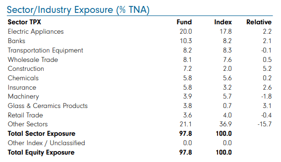 Oleh karena orientasinya berdasarkan nilai, mereka mengidentifikasi saham dengan harga pasar yang berada di bawah nilai intrinsiknya melalui metode kuantitatif dan kualitatif. Reksa dana ini bertujuan untuk mengungguli indeks TOPIX sebesar 3% per tahun dengan volatilitas sekitar 10%.