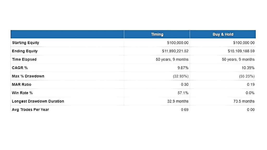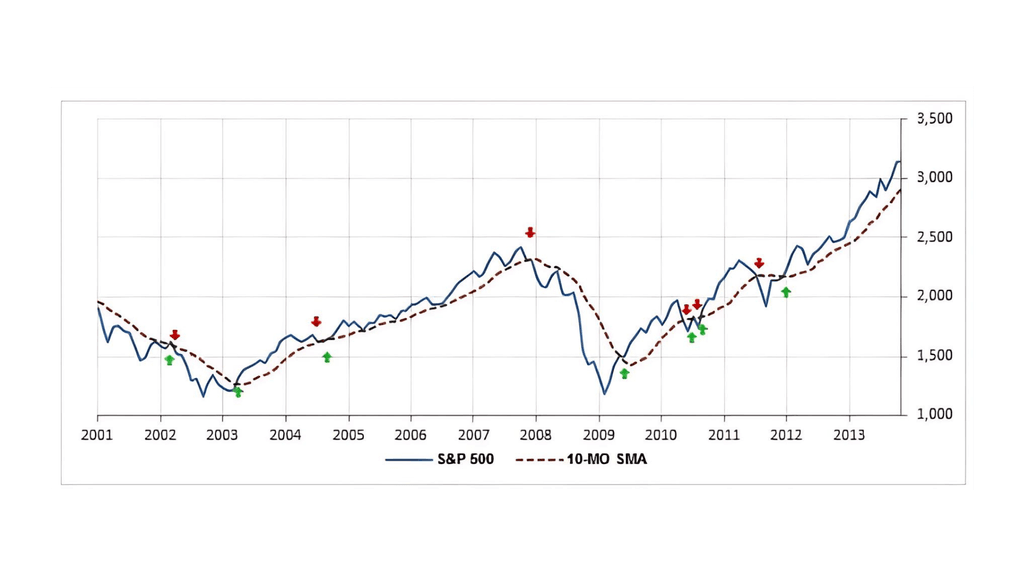 Misalnya, investor akan masuk ke dalam pasar apabila harga pada indeks S&P 500 di atas rata-rata pergerakannya selama 10 bulan atau keluar dari pasar jika harganya berada di bawahnya.