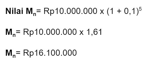 Pada akhir tahun kelima, total uang Budi akan menjadi 16,1 juta dengan keuntungan sebesar 6,1 juta. Cukup mudah, bukan?