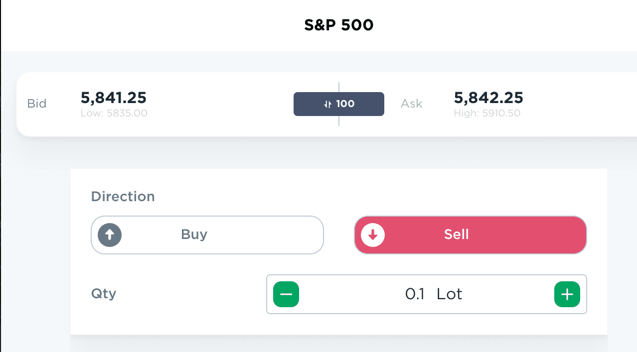 Kemudian, jika Anda ingin menggunakan buy the dip dalam jangka pendek sebagai lindung nilai maupun spekulasi, derivatif keuangan adalah pilihannya. Mari kita melihat operasi short (short position/menjual aset) pada S&P 500 berikut menggunakan MIFX.