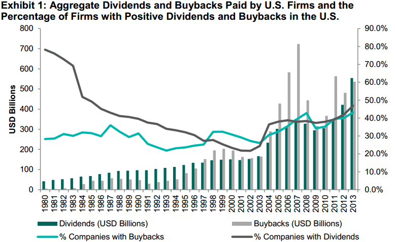 Saat ini, hal tersebut tidak hanya populer di AS saja, namun sudah merambah secara global. Saat ini beberapa peusahaan di Eropa dan Asia melakukan pembagian keuntungan dengan cara buyback, namun sesekali akan ada pembagian dividen. Kedua cara tersebut berkombinasi.