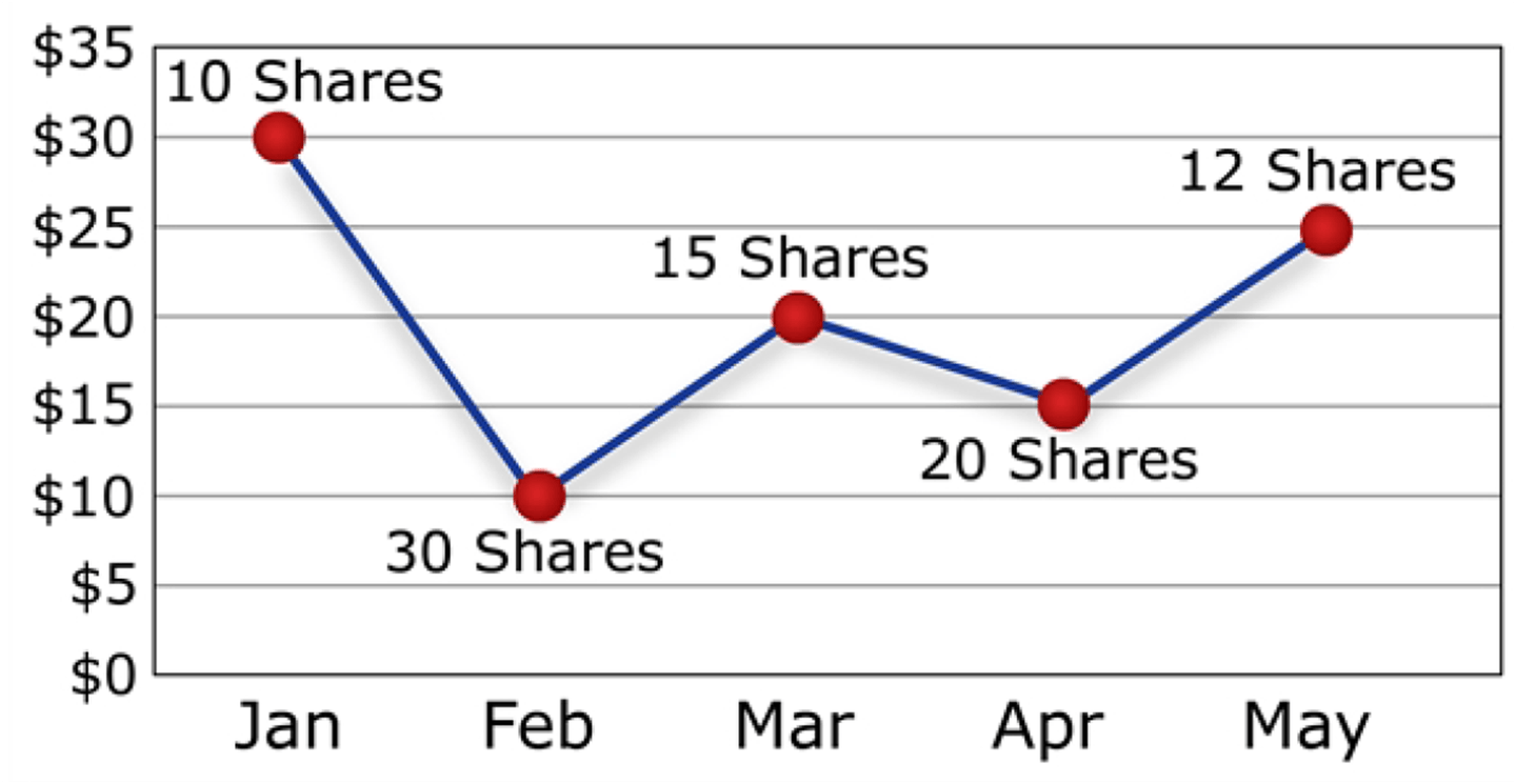 Berikut ini contoh sederhana penerapan strategi Dollar Cost Averaging adalah sebagai berikut: