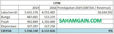 Contoh lain perhitungannya dapat dilihat pada saham Charoen Pokphand Indonesia (CPIN) untuk tahun buku 2018 dan 2019.