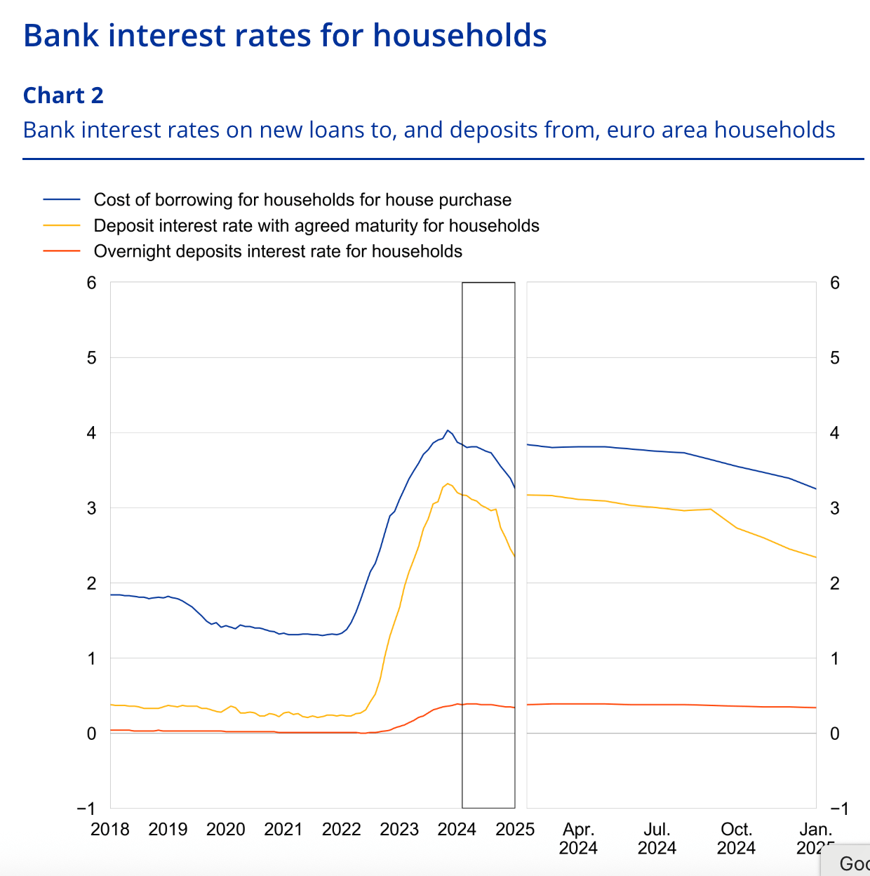 Namun mulai September 2024, Christine Lagarde telah mengakhiri periode ECB rate yang tinggi. Dia telah memberi perintah menurunkan suku bunga kedua sebesar 25 basis poin. Saat ini kita telah masuk dalam siklus penurunan suku bunga sebesar 25 bps pada Januari 2025. Ini menjadi pemangkasan suku bunga ECB yang kelima. Sehingga, sejak paruh akhir 2024 hingga awal 2025 ECB telah memangkas suku bunga sebesar 125 basis poin.