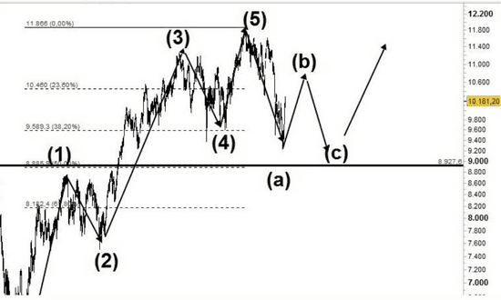 Jika kita melihat gelombang Elliott yang sudah terbentuk dengan 5 gelombang, kita dapat menyimpulkan bahwa koreksi ABC akan datang.