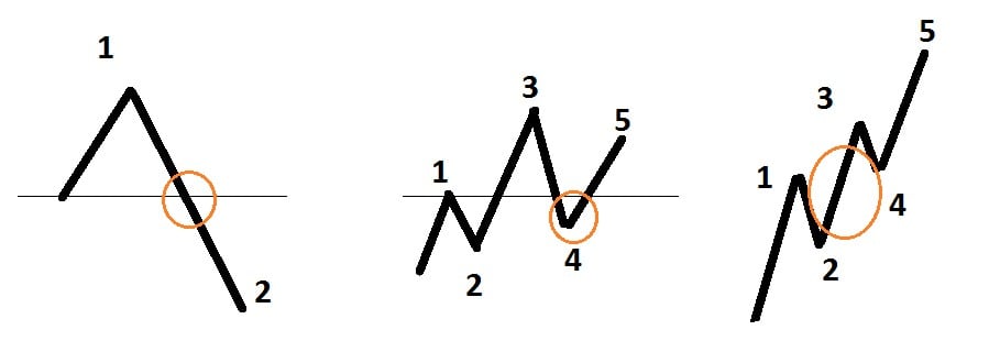 Selain itu, jika kita sudah melihat 3 gelombang terbentuk, kita tahu bahwa gelombang korektif 4 yang akan datang kemudian membentuk gelombang terakhir 5.