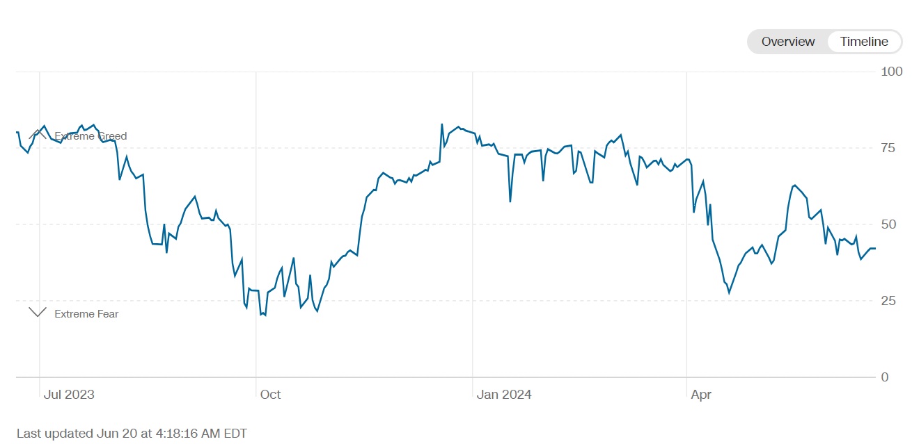 Dari gambar di atas, Indeks berada di 42 poin yang menunjukkan bahwa sentimen pelaku pasar adalah ketakutan: