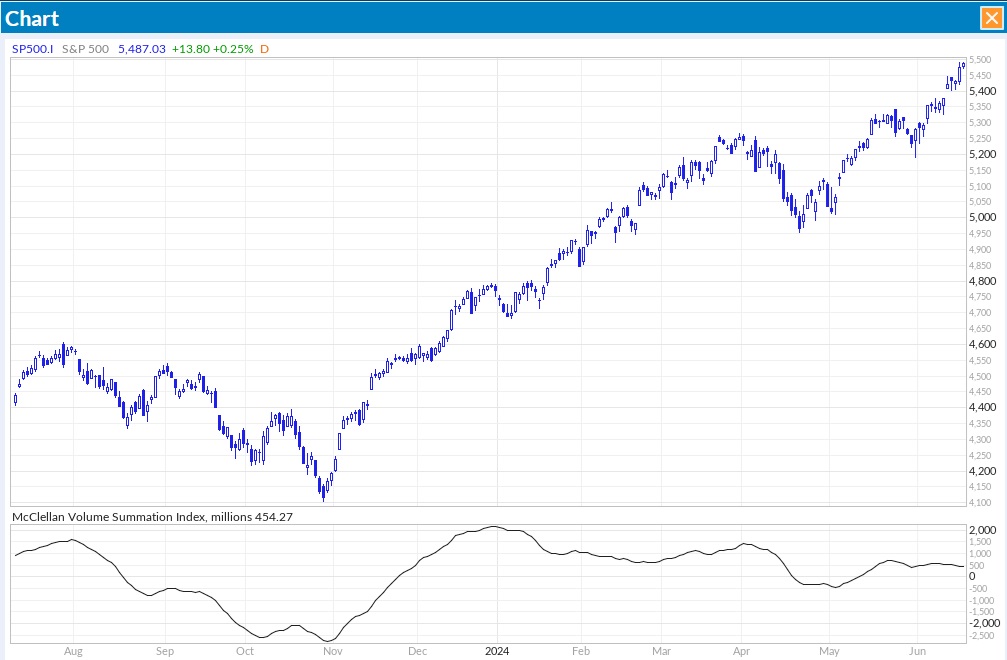 Volume perdagangan juga dapat mencerminkan bagaimana perasaan investor. Indeks ketakutan dan keserakahan mencakup McClellan Volume Summation Index yang melihat tren volume perdagangan pada hari-hari kuat dan lemah. Peningkatan volume perdagangan menunjukkan keserakahan investor, sementara penurunan volume mengindikasikan ketakutan. Indikator ini membandingkan volume saham yang sedang naik dengan volume saham yang sedang turun.