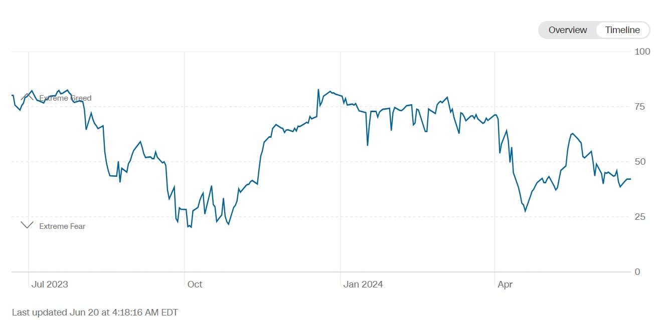 Dari gambar di atas, Indeks berada di 42 poin yang menunjukkan bahwa sentimen pelaku pasar adalah ketakutan: