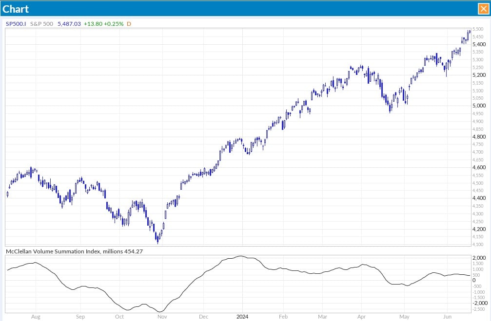 Volume perdagangan juga dapat mencerminkan bagaimana perasaan investor. Indeks ketakutan dan keserakahan mencakup McClellan Volume Summation Index yang melihat tren volume perdagangan pada hari-hari kuat dan lemah. Peningkatan volume perdagangan menunjukkan keserakahan investor, sementara penurunan volume mengindikasikan ketakutan. Indikator ini membandingkan volume saham yang sedang naik dengan volume saham yang sedang turun.