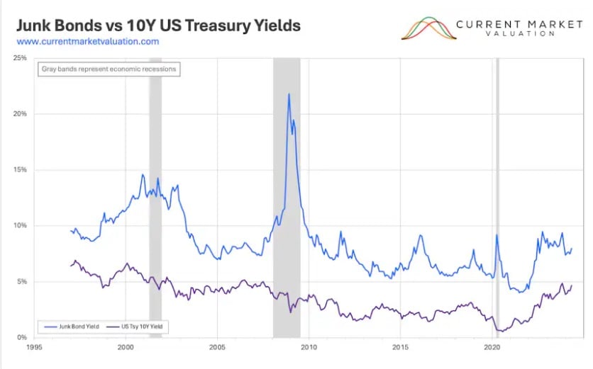 Indikator ini mengukur permintaan obligasi sampah melalui selisih hasil antara obligasi sampah dan obligasi dengan peringkat investasi. Ketika perbedaan hasilnya lebih kecil, investor lebih terbuka terhadap risiko atau lebih serakah. Sebaliknya, selisih hasil yang lebih besar menunjukkan iklim investasi yang lebih berhati-hati atau penuh ketakutan.