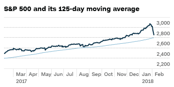 Dalam grafik MarketWatch ini, kita melihat perilaku S&P 500 (garis biru) dan rata-rata pergerakannya (garis hitam) sejak 21 Februari. Begini cara menafsirkannya: