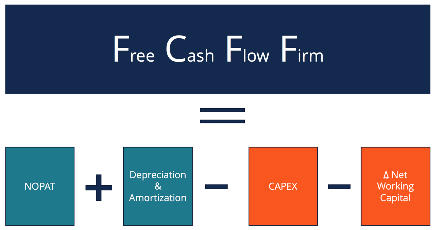 Free Cash Flow to the Firm (FCFF): FCFF adalah ukuran arus kas bebas yang tersedia untuk semua penyedia modal perusahaan, termasuk pemegang saham dan pemegang utang. FCFF dihitung dari EBIT yang disesuaikan untuk pajak, ditambah depresiasi dan amortisasi, dikurangi modal kerja bersih dan investasi modal (CapEx). Ini memberikan gambaran tentang jumlah kas yang tersedia setelah biaya operasional dan investasi, untuk membayar pemegang saham dan pemegang utang.