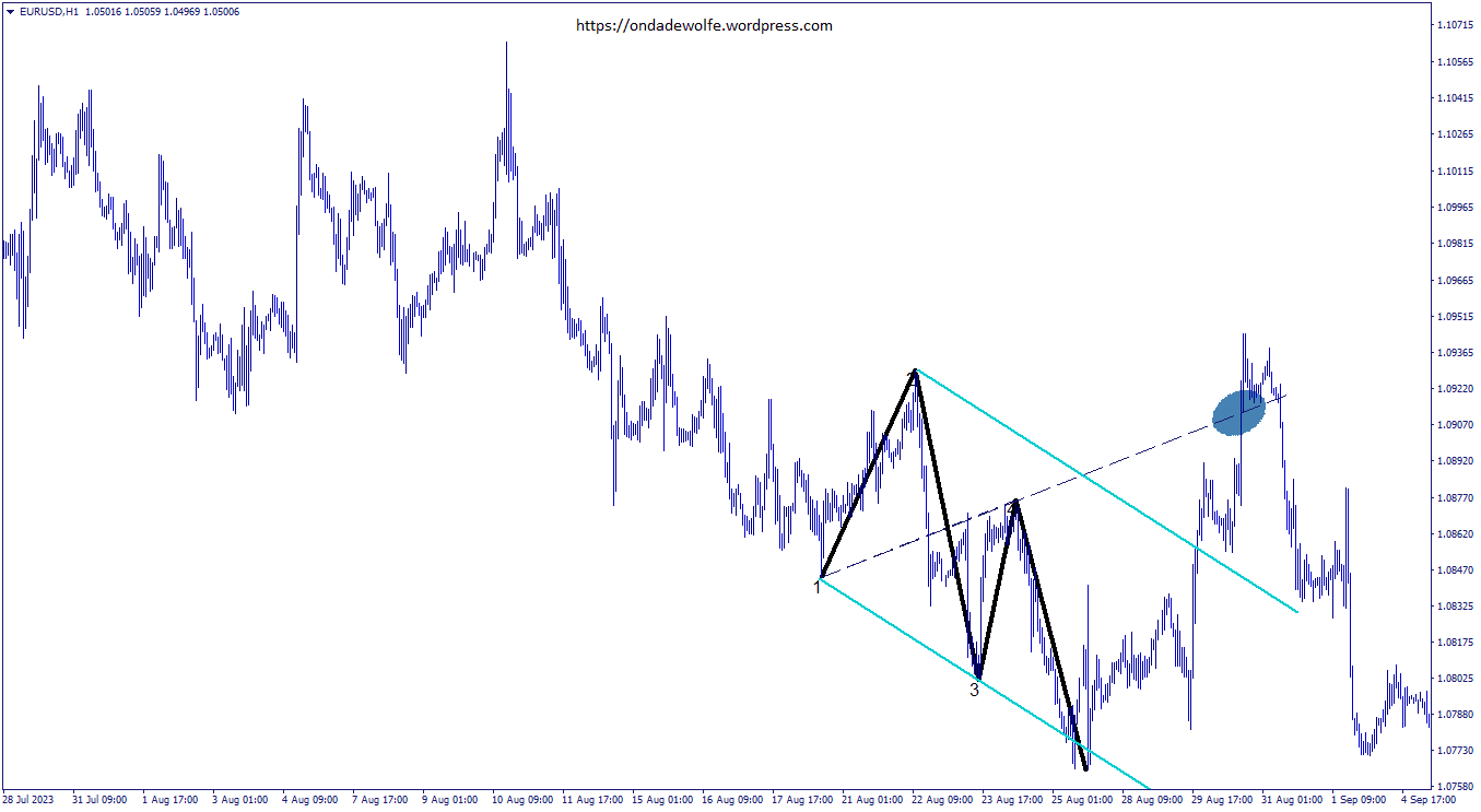 Berikut merupakan dua contoh dari gelombang Wolfe pada saat bearish: