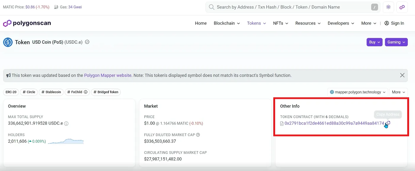 Kita lihat di bagian tengah kiri gambar bagaimana menyalin kontrak, dengan mengklik kotak yang menunjukkan “Copy to clipboard”