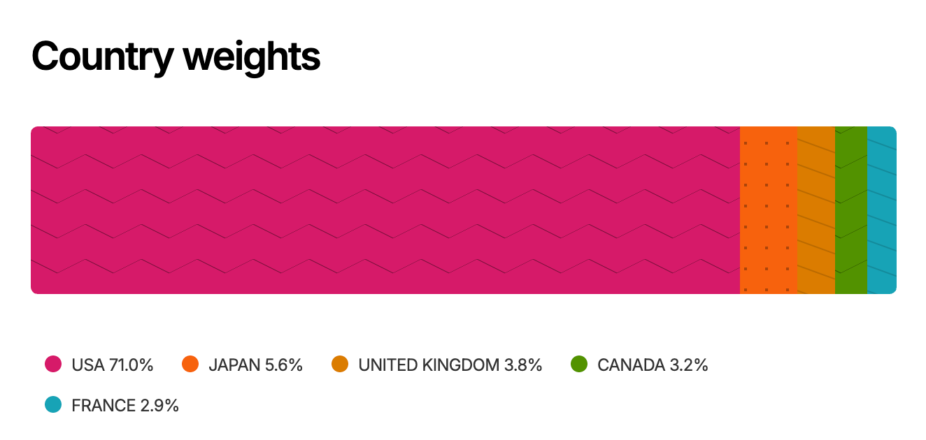 Negara dengan bobot terbesar dalam indeks ini adalah Amerika Serikat. Kemudian diikuti oleh Jepang, Inggris, dan Prancis. Namun, bobot masing-masing tidak melebihi 10%.