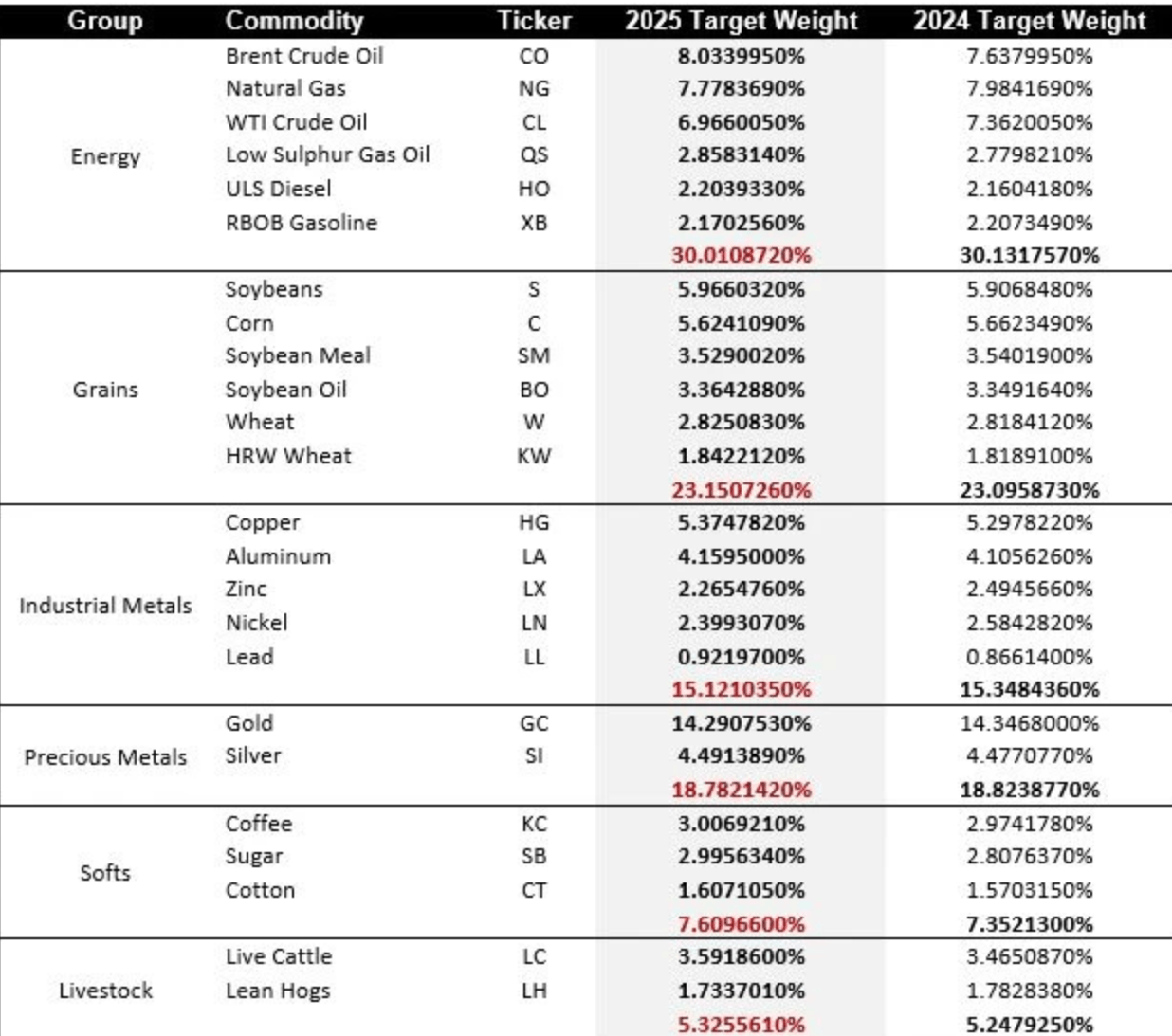 Berikut merupakan komposisi dari Bloomberg Commodity Index:
