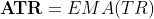 Untuk menghitung Average True Range cukup dengan exponential moving average (EMA) dari n periode (biasanya 14) ke nilai TR. Berikut rumusnya:
