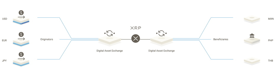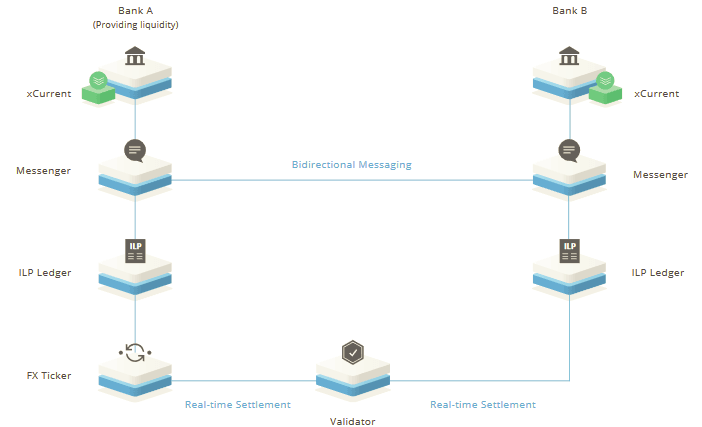 Solusi ini menawarkan transaksi terenkripsi yang aman dengan cara yang terdesentralisasi tanpa melalui bank perantara. Protokol xCurrent tidak memerlukan XRP melainkan menggunakan "interledger protocol" (IPL) dan "decentralized ledger", sehingga setiap peserta memiliki akses ke sana. Namun, dalam kasus transfer multi-currency diperlukan likuiditas di pasar mata uang sangat diperlukan agar dapat berfungsi dengan benar.