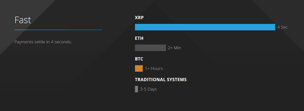 Namun, Ripple memungkinkan transaksi instan yang hampir tanpa komisi dan aman. Bertentangan dengan pendapat yang banyak orang percayai, RippleNet tidak memerlukan mata uang kripto untuk dapat bekerja dan dapat bekerja langsung dengan uang fiat.
