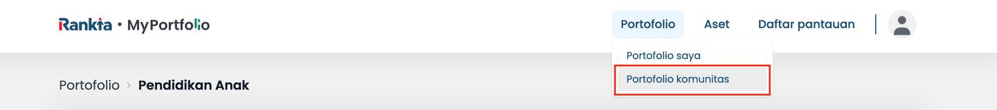 Untuk mulai mengikuti portofolio investor lain di MyPortfolio Rankia, buka menu utama "Portofolio" di bagian atas, kemudian pilih "Portofolio Komunitas".