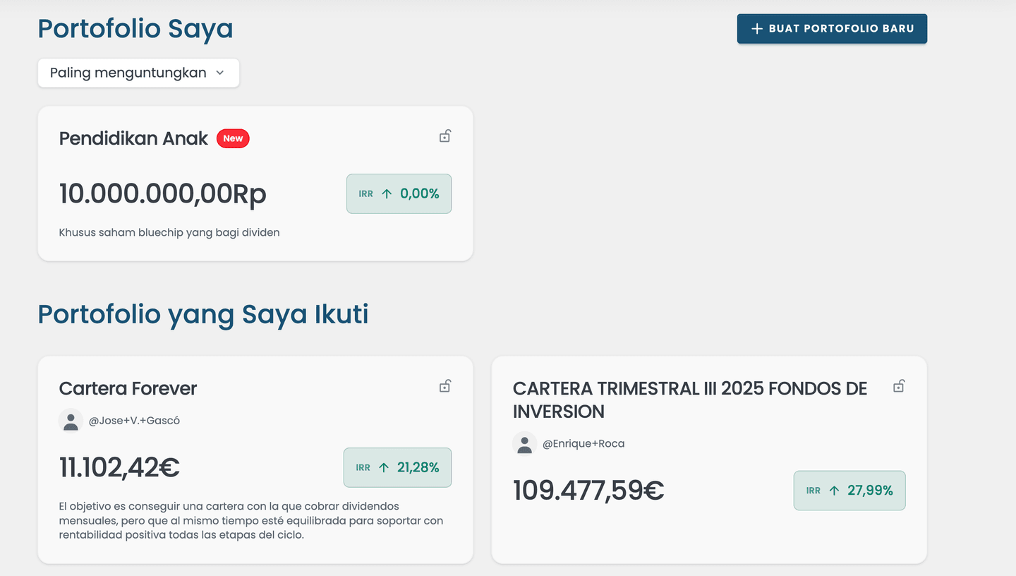 Fitur ini sangat berguna bagi Anda yang ingin belajar berbagai strategi investasi, belajar dari pengguna yang sudah berpengalaman, atau mencari inspirasi dalam menyusun portofolio pribadi.