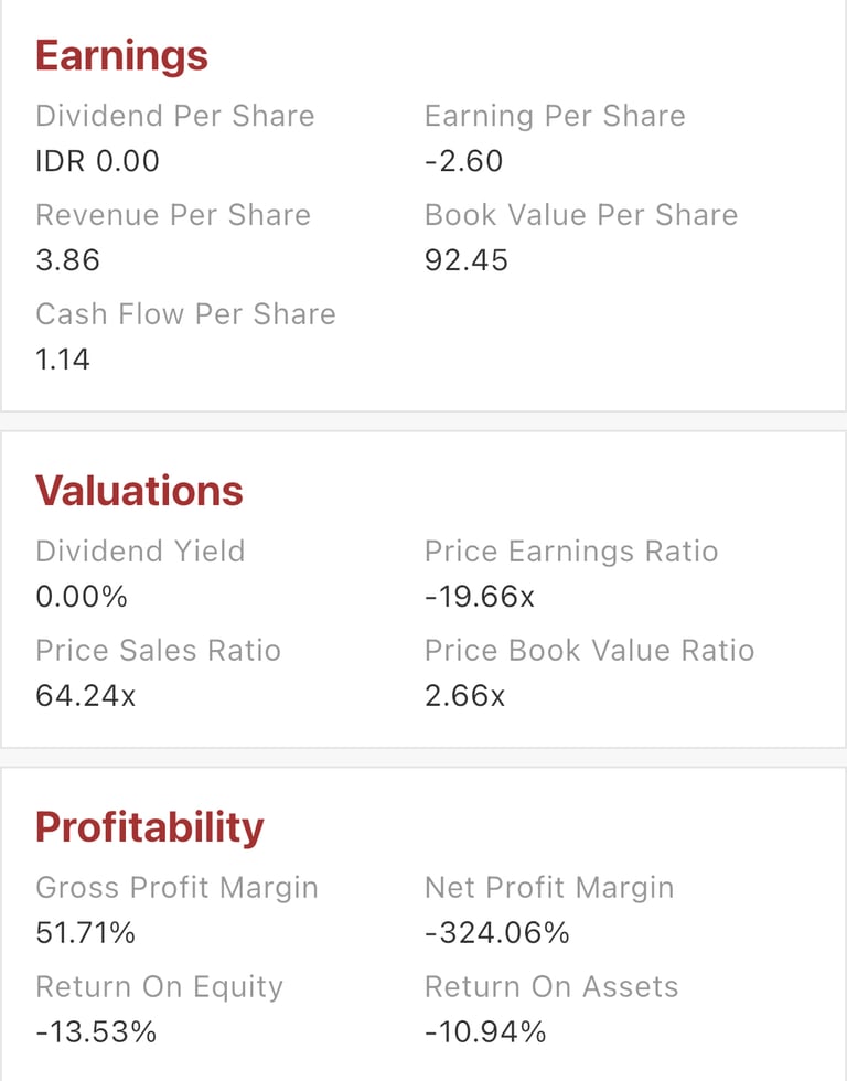 Saham ini cocok bagi investor dengan profil investasi “spekulatif-growth” yang bersedia menanggung volatilitas dan ingin berinvestasi jangka panjang. Sehingga, tidak cocok bagi investor value yang mengutamakan PER rendah dan arus kas positif.
