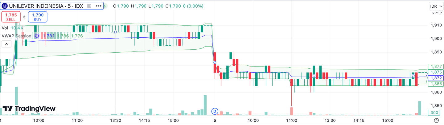 Pada tanggal ex dividen, harga saham awalnya berkurang menjadi Rp 1.878 karena dividen. Namun saham UNVR kembali berfluktuasi, meski mengalami penurunan di akhir hari perdagangan.