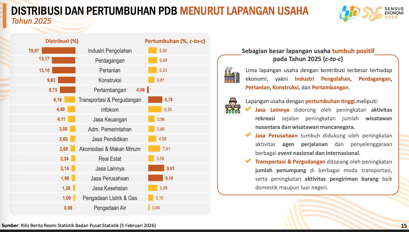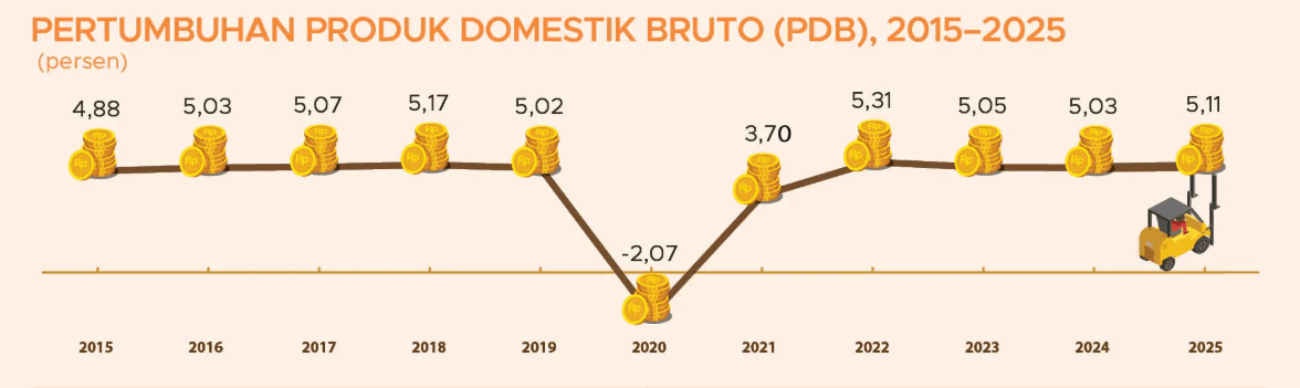Berdasarkan data BPS, berikut perkembangan pertumbuhan ekonomi Indonesia 2025 secara tahunan: