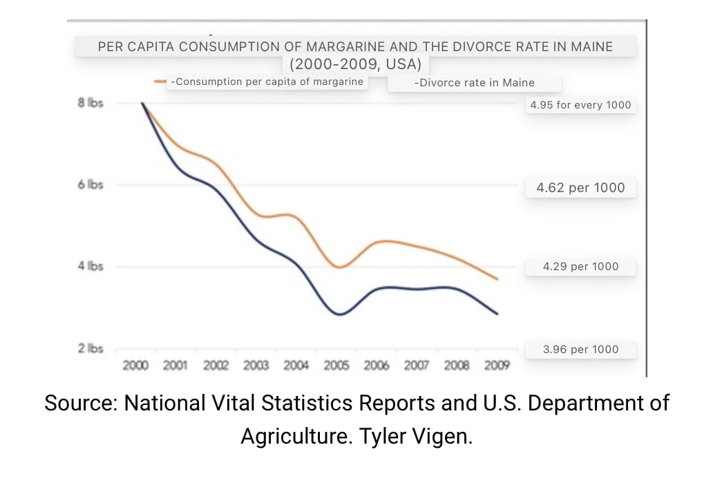 Kita bisa berkelana dan mencoba menjelaskan bahwa margarin yang mereka konsumsi di Maine mengandung beberapa zat yang membuat pasangan bercerai. Tapi penjelasan ini hanyalah meyakinkan diri kita sendiri. Dan, dalam hal trading, ini sama saja dengan kehilangan uang.