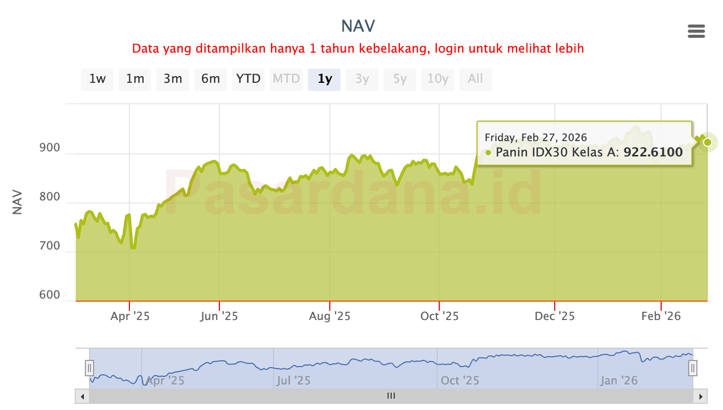 | Panin IDX30 Kelas A | 22,08% | Panen Asset Management | Rp 2,97 triliun | 0,13% | |||||
