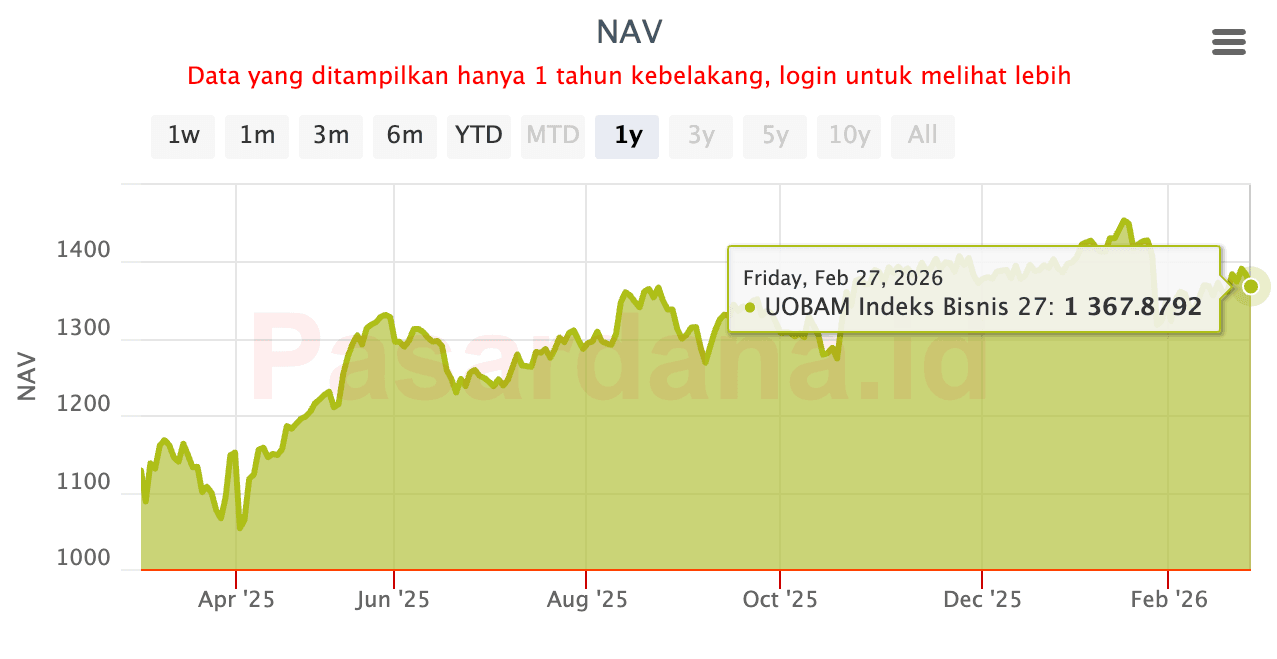 | Reksa Dana UOBAM Indeks Bisnis-27 | 21,24% | UOB Asset Management | Rp 180,74 miliar | 4,23% | |||||