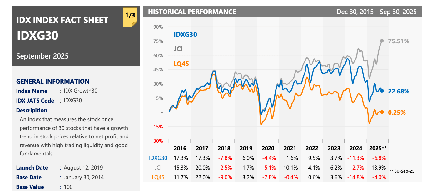 Indeks ini adalah indeks saham yang diluncurkan oleh Bursa Efek Indonesia (BEI) pada 30 Januari 2014. Tujuannya, untuk mengukur kinerja 30 saham yang menunjukkan tren pertumbuhan harga beserta pertumbuhan laba bersih dan pendapatannya. Selain itu, saham-saham perusahaan tersebut juga harus memiliki fundamental yang baik dan likuiditas yang tinggi.