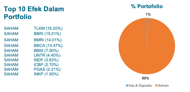 Kemudian, per 30 April 2025, mereka memiliki komposisi portofolio investasi sebesar 98,03% dalam saham dan 1,97% pada Kas.