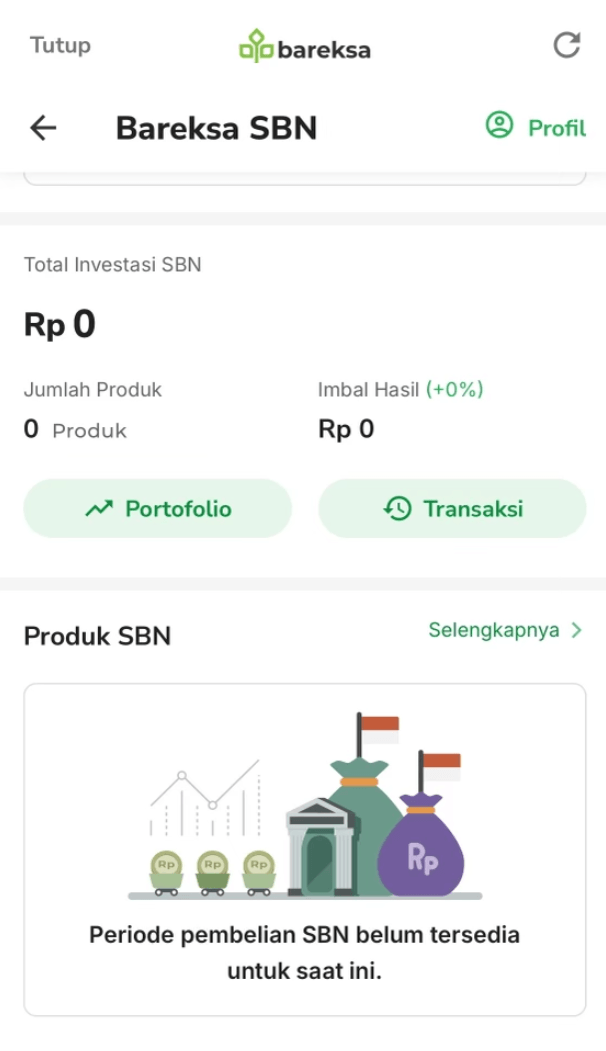 Selanjutnya, Anda juga dapat membeli SBN di Bareksa. SBN adalah surat berharga yang diterbitkan pemerintah untuk membiayai anggaran negara dan bisa menjadi instrumen investasi bagi pemegangnya (investor) karena bisa memberikan imbal hasil atau keuntungan. Dengan membeli instrumen investasi ini, Anda turut berkontribusi dalam pembangunan negara.