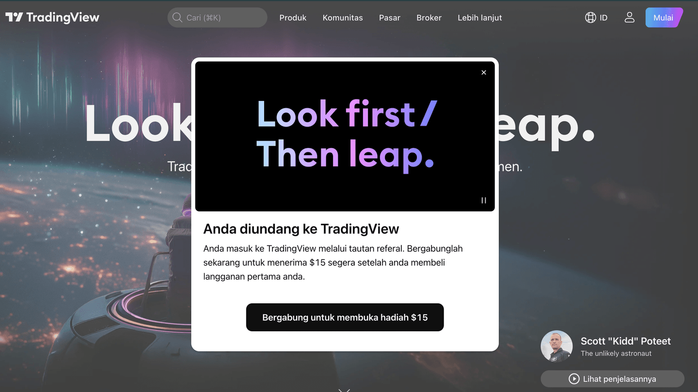 Anda berpotensi mendapatkan reward sebesar US$ 15 yang bisa Anda gunakan sebagai modal awal untuk berinvestasi di instrumen saham, ETF maupun kripto yang Anda inginkan. Caranya buka Tradingview dengan membuka akun melalui tombol di bawah ini: