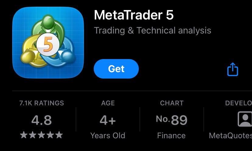 MetaTrader mendapatkan rating 4.8 dari 5. Jumlah pengguna yang memberi penilaian terhadap aplikasi ini adalah sebanyak 7.100 pengguna. MetaTrader 5 menempati aplikasi populer urutan ke 89 yang termasuk ke dalam kategori finance.