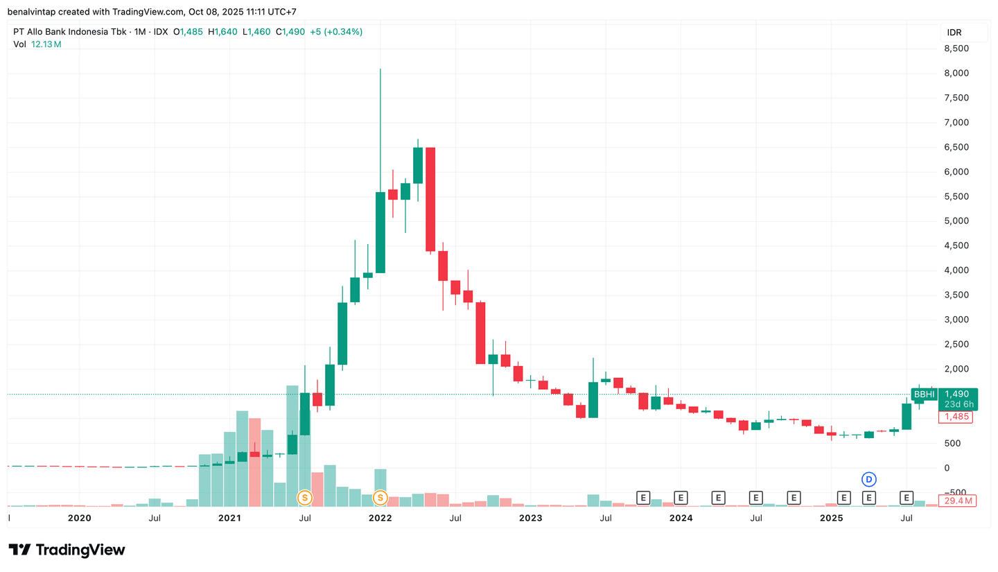 Kemudian pada 2021, BBHI melakukan rebranding dengan mengubah nama dari PT Bank Harda International Tbk menjadi PT Allobank Indonesia Tbk, yang melayani bank digital berskala nasional. Rebranding ini membawah saham BBHI yang tidur melesat naik dari sekitar Rp 137 menjadi Rp 3.960 sepanjang 2022.