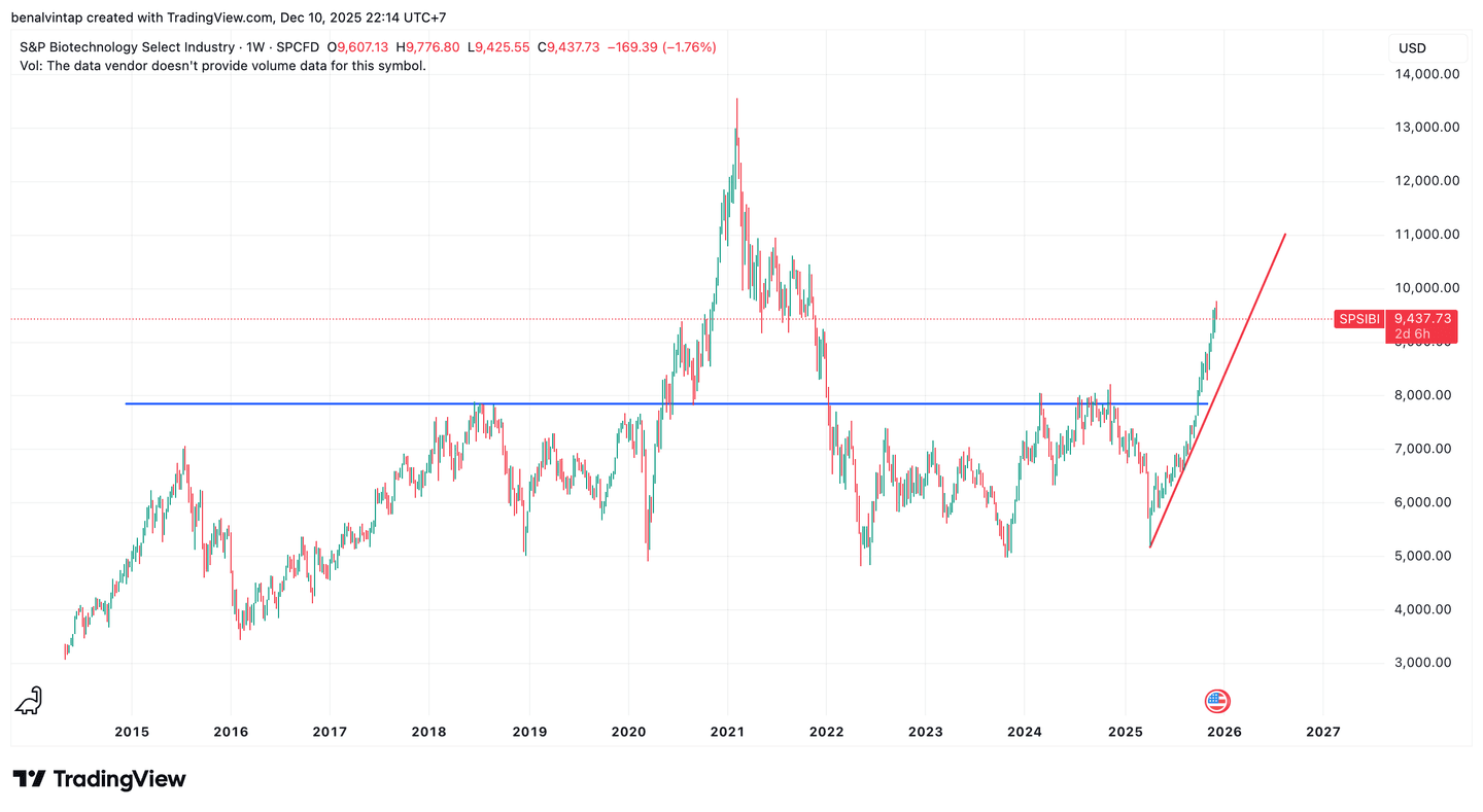 Ketika seluruh perhatian dunia tertuju pada algoritma, AI dan chip, ada satu sektor yang diam-diam mulai bangkit secara kuat, yaitu saham bioteknologi. Sektor ini berhasil mengungguli kinerja S&P 500 dalam beberapa bulan terakhir. Selain itu, bioteknologi juga menjanjikan perubahan besar dalam cara kita hidup, cara kita makan, dan bagaimana kita menua.