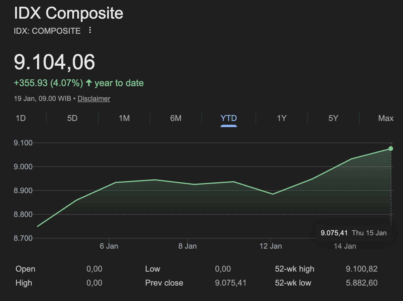 Di tahun 2026, IHSG juga menguat lebih dari 3% year-to-date (YTD). Bahkan, di tanggal 15 Januari kemarin, IHSG ditutup menyentuh all-time high di level 9.075,41.