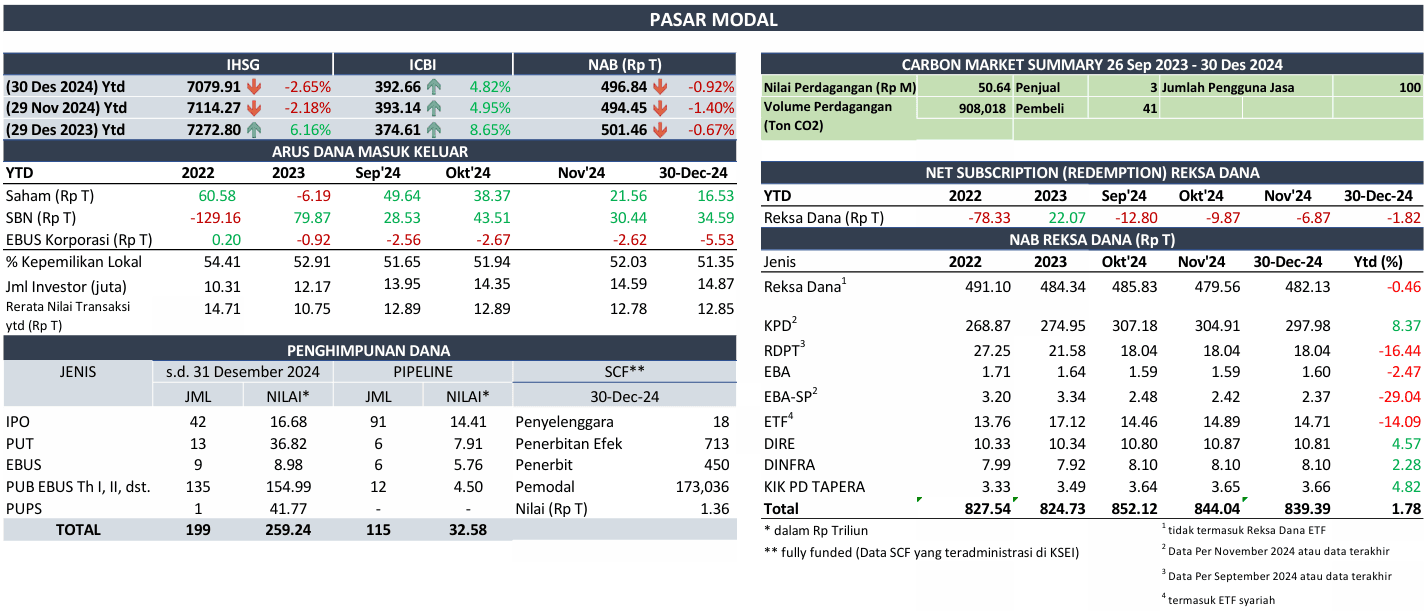 Efeknya, indeks obligasi pemerintah maupun korporasi di Indonesia mencatatkan kinerja positif. Kenaikan Indonesia Composite Bond Index (ICBI) tumbuh 4,82% sejak awal tahun hingga 30 Desember 2024. Kinerja indeks didukung dengan net buy oleh investor asing sebesar Rp 34,59 triliun di sepanjang tahun 2024.